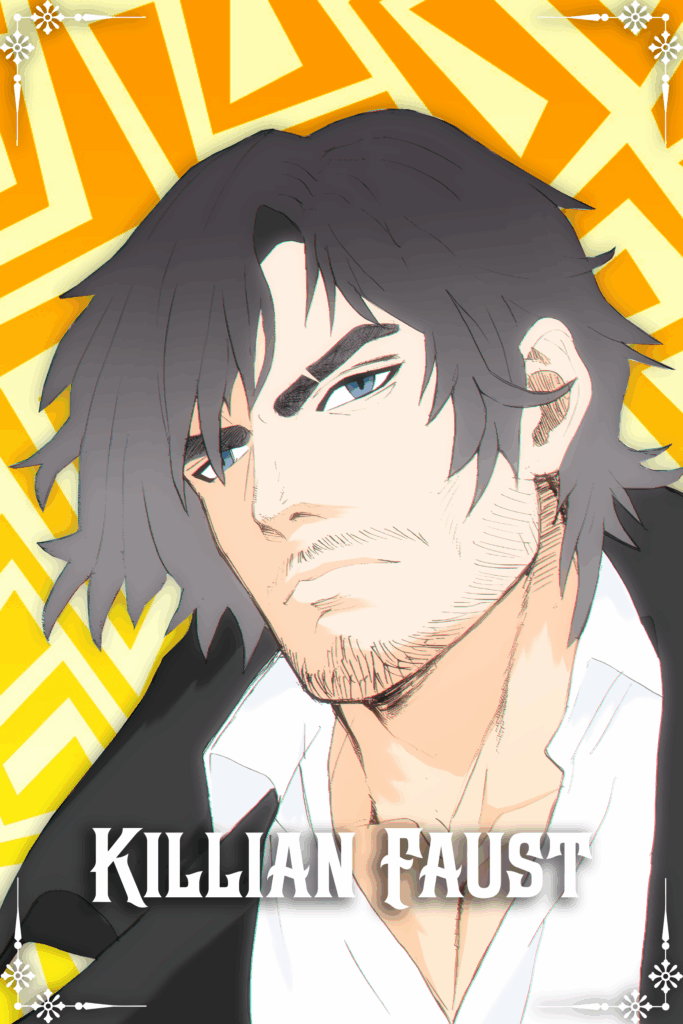 “My name’s Killian. Killian Faust. Your name, kid?” asks the man.