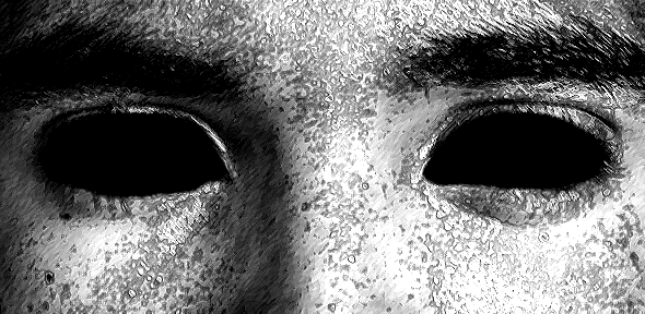 He watched in horror. The eyes of the store clerk and the two other customers began to change. Color drained from their irises. Replaced by pure, glossy black.